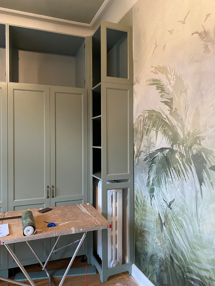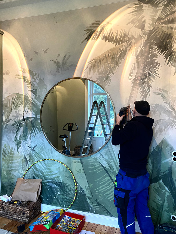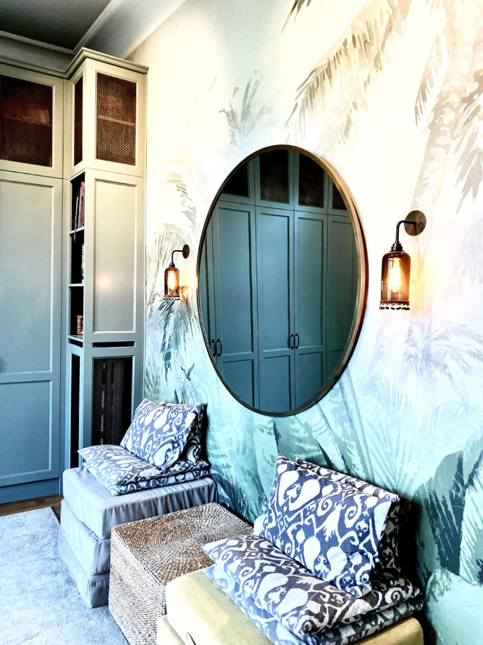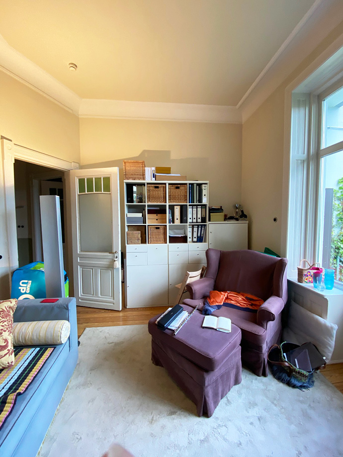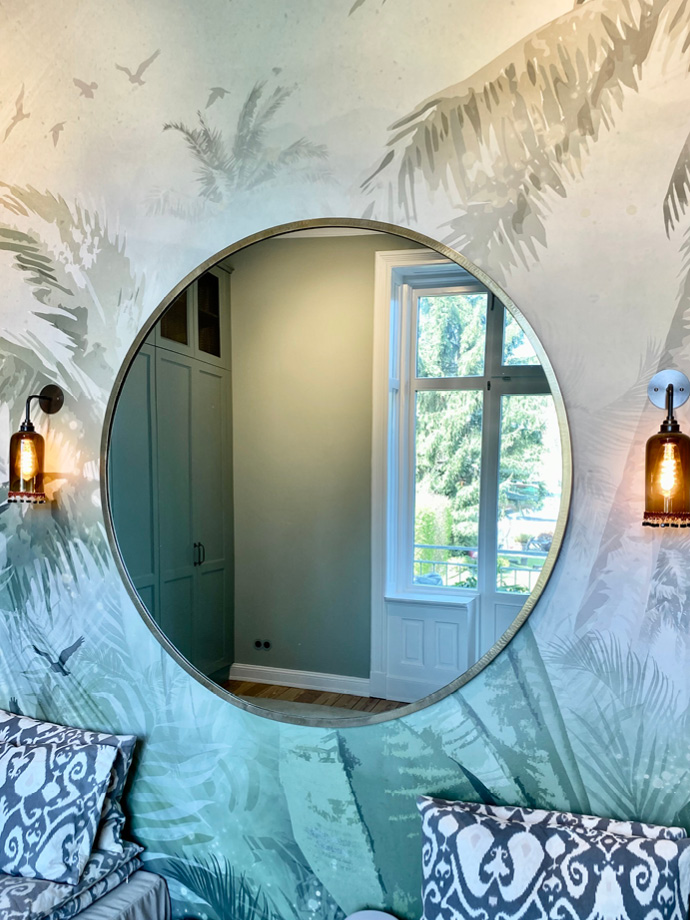 Das nach Norden zum Alsterkanal ausgerichtete Zimmer sollte durch eine lichtdurchflutete Tapete heller und freundlicher wirken.